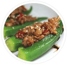 高營養的秋葵帶點蒜風味油味,與甘醇入味的蒜香肉未食用,吃起來軟糯粘滑清...